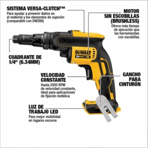 Atornillador Drywall DEWALT 20V MAX XR BRUSHLESS DCF630D2‑B2 Kit Con 2 Baterías 2 Ah, Cargador y Bolso de Traslado