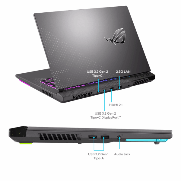 1x HDMI 2.1 TMDS1x USB 3.2 Gen 2 Tipo-C2x USB 3.2 Gen 1 Tipo-A1x USB 3.2 Gen 2 Tipo C compatible con pantallas / entrega de alimentación1 puerto LAN RJ45 - Teclado y Touchpad