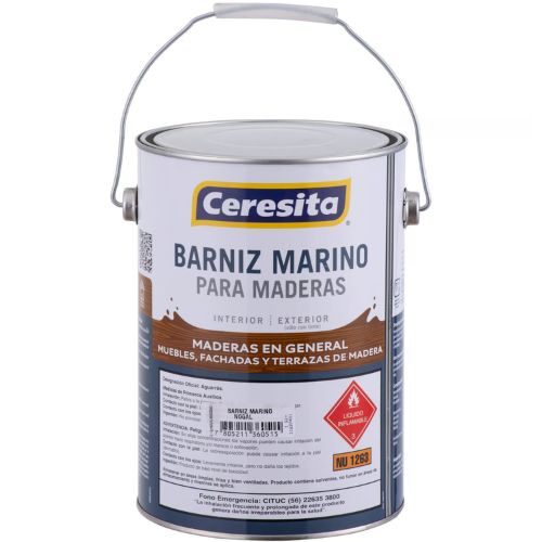 El barniz marino Ceresita tiene una base solvente y proporciona un acabado brillante. Su aplicación es tanto para interior como exterior, siendo perfecto para proteger superficies de madera. Este producto destaca por su alta resistencia al agua y a la intemperie, además de ser muy resistente a los arañazos, asegurando una larga duración y un aspecto impecable.