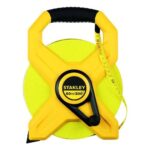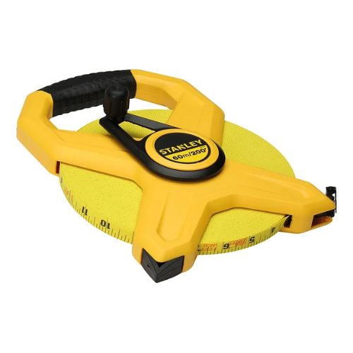 La Cinta Larga STANLEY® 34-794S de 60 m / 200′ en fibra de vidrio con carril abierto ofrece precisión CEE III, doble cara, gancho plegable y protección UV, ideal para mediciones técnicas en campo.