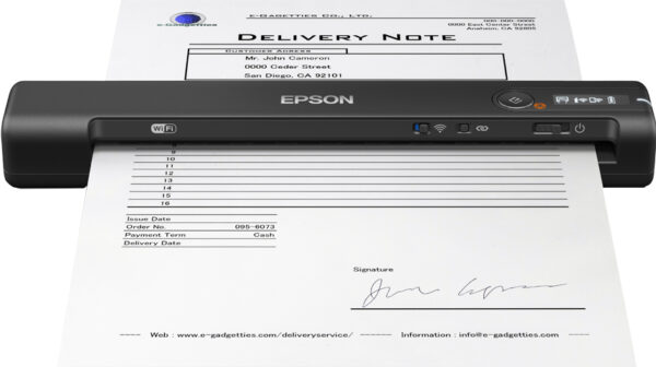 Epson – WorkForce ES-60W – Portatil a color – Una cara 4ppm – Alimentador manual – 600dpi, Resolución 1,200dpi – 500pag x día – USB 2.0, WiFi – Windows, MAC – 1 año