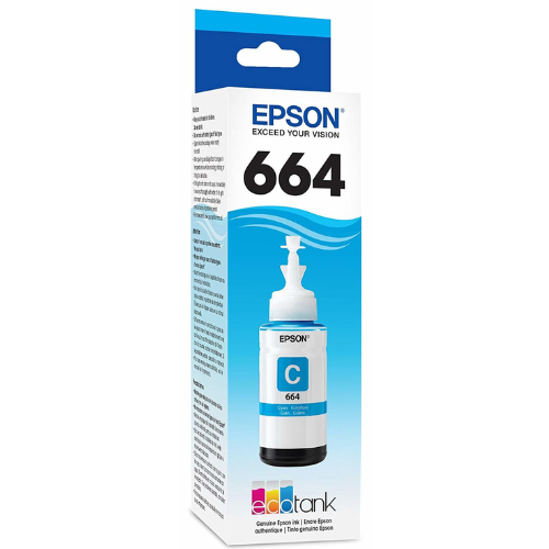 Epson T664 – Cián – original – recarga de tinta – para Epson L380, L386, L395, L495; EcoTank ET-2600, 2650, L1455, L396, L606, L656