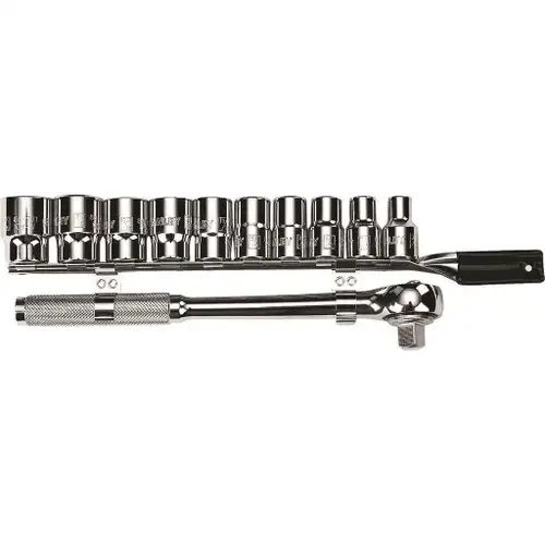 - 11 piezas totales, que incluyen 10 dados en pulgadas y 1 matraca profesional