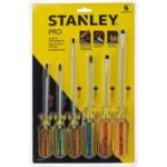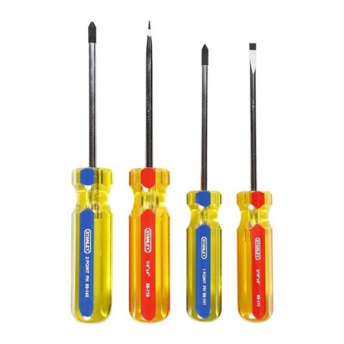 Set STANLEY® STHT69169 de 4 destornilladores PRO, con puntas planas y Phillips, mangos ergonómicos codificados por color, barras en Cromo Vanadio y puntas magnéticas fosfatadas. Ideal para ajustes técnicos y mantenimiento profesional.