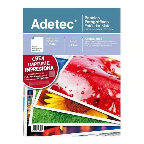 Papel Fotográfico ADETEC Inkjet Mate Carta 170g 20 Hojas 8006