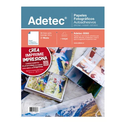 Papel Fotográfico Adhesivo ADETEC Mate Carta 150 g x 10 Hojas