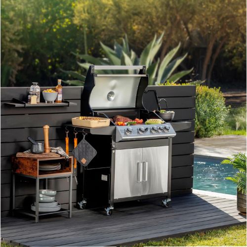 Parrilla a Gas MR BEEF de 4 Quemadores + Quemador Lateral.