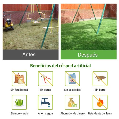 Este pasto sintético está hecho de polipropileno, un material resistente y duradero que te permitirá disfrutar de tu jardín por mucho tiempo. Su color verde y su apariencia artificial te darán la sensación de tener un jardín natural, sin la necesidad de regarlo o cortarlo. Además, su rendimiento de 5 m2 te permitirá cubrir una gran superficie con un solo rollo.