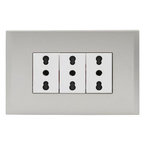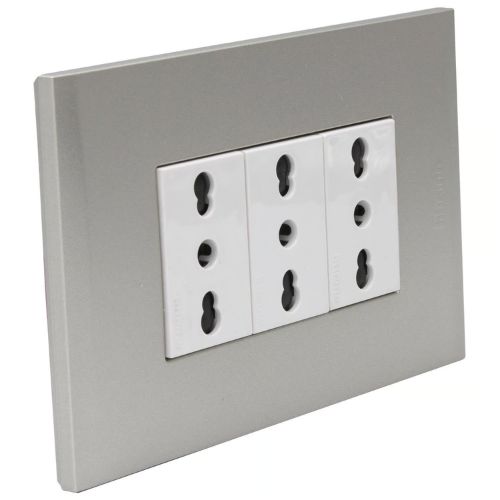 Placa Armado BTICINO Nóbile Tomacorriente Triple 10/16A Color Perla