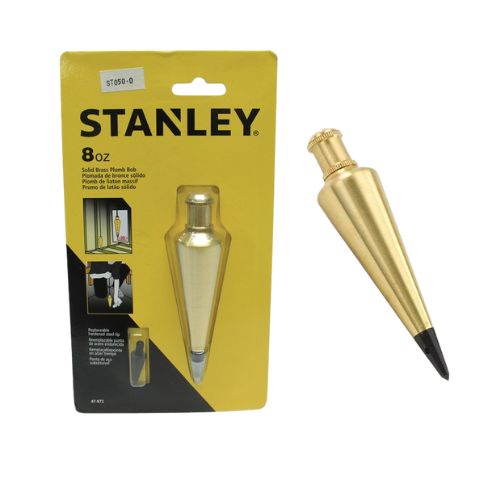 La Plomada STANLEY 47-973 de 8oz en bronce sólido ofrece precisión vertical, punta de acero reemplazable y diseño cónico. Ideal para replanteo técnico y construcción civil.