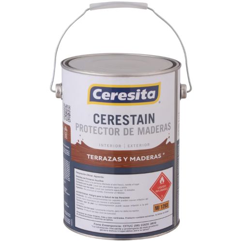 El Protector de Madera Cerestain tiene una base solvente y viene en un envase de 1 galón. Su fórmula penetra profundamente en la madera, realzando su color y textura sin alterar su aspecto original. Proporciona una excelente resistencia al desgaste y la abrasión, asegurando una protección duradera incluso en condiciones de alto tráfico. Es ideal para proteger terrazas y maderas, tanto en interiores como en exteriores.