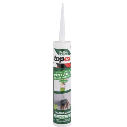 Entre las características del Sellador Acrílico Topex se destaca su óptima adherencia sobre gran variedad de materiales y elementos como yeso, fibrocemento, hormigón, estuco, ladrillo y todo tipo de maderas, incluso aglomerados. Podrás aplicarlo fácilmente sobre superficies limpias y porosas. De ser necesario, para realizar una mejor terminación en el trabajo, podrás pintar por encima del sellador una vez fraguado. Uno de los beneficios de este sellador acrílico es su funcionalidad, ya que su uso está destinado a gran cantidad de labores: sellado de juntas y fisuras, sellado de marcos de puertas y ventanas e inclusive de artefactos sanitarios.