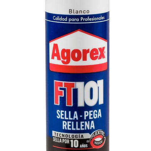 Agorex FT 101 Blanco es un Sellador/adhesivo elástico monocomponente, de alto desempeño, sella, pega y rellena. Para uso general, basado en la Tecnología Alemana FLEXTEC®. Se puede aplicar en interiores y exteriores, sin importar el clima ni el material. Flextec es una tecnología patentada por Henkel a base de polímero híbrido que cura con la humedad presente en el aire.