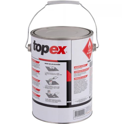 Este sellador de poliuretano Topex es perfecto para techos, ofreciendo una excelente protección contra filtraciones. Una vez seco, forma una capa resistente que permite la aplicación de pintura superior. Su contenido de 1 galón te asegura que tendrás suficiente para cubrir una gran superficie.