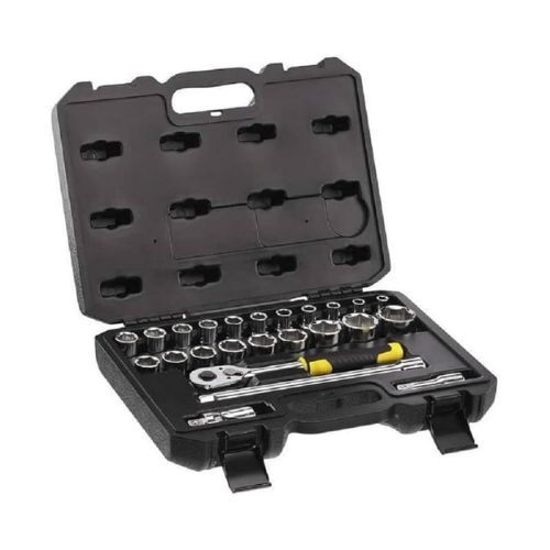 Set STANLEY® FATMAX® STMT82830-1 de 24 piezas, con vasos métricos 1/2″ (8 mm a 32 mm), carraca de 72 dientes, extensiones y cardán, en estuche rígido. Ideal para mecánica pesada, mantenimiento técnico y trabajos estructurales exigentes.