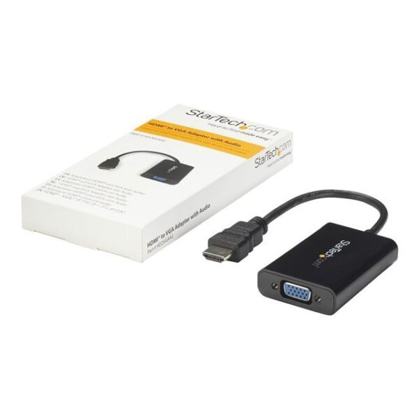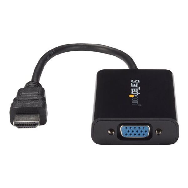 StarTech.com Cable Adaptador Externo Conversor Vídeo Audio HDMI a VGA – 1x HD15 Hembra – 1x HDMI Macho – 1x Mini Jack Hembra – 1920×1200 – Adaptador de vídeo – HDMI macho a HD-15 (VGA), miniconector, Micro-USB tipo B hembra – 25 cm – negro – compatibilida