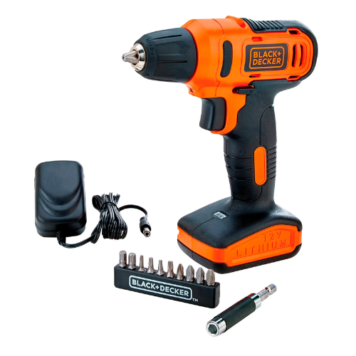 Taladro Rotación Inalámbrico BLACK+DECKER 3/8″ 12V Ion Litio Con 12 Accesorios
