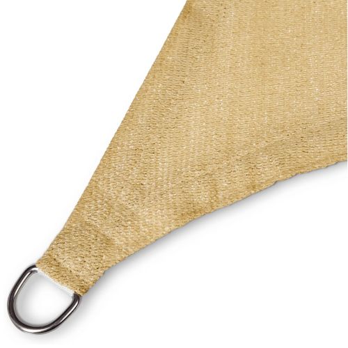 Está compuesto por una tela malla, con material HDPE polímero termoplástico formado por múltiples unidades de etileno con pantalla de radiación anti-UV – 90% de protección UV, espesor del material 165g / m ², transpirable, resistente a la intemperie, impermeable y con tratamiento antimoho. Gracias al material resistente a la intemperie, los anillos de acero inoxidable para la fijación, y sus doble costura en su borde y esquinas la vela se conforma muy robusta y firme, extremadamente duradera en el tiempo, es fácil de lavar con un detergente normal y con una bomba de jardín.