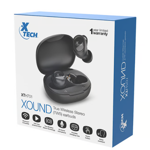 Xtech – XTH-701 – True wireless earphones – Para Home audio / Para Portable electronics / Para Tablet / Para Cellular phone – Wireless – Xound W/Charging Case
